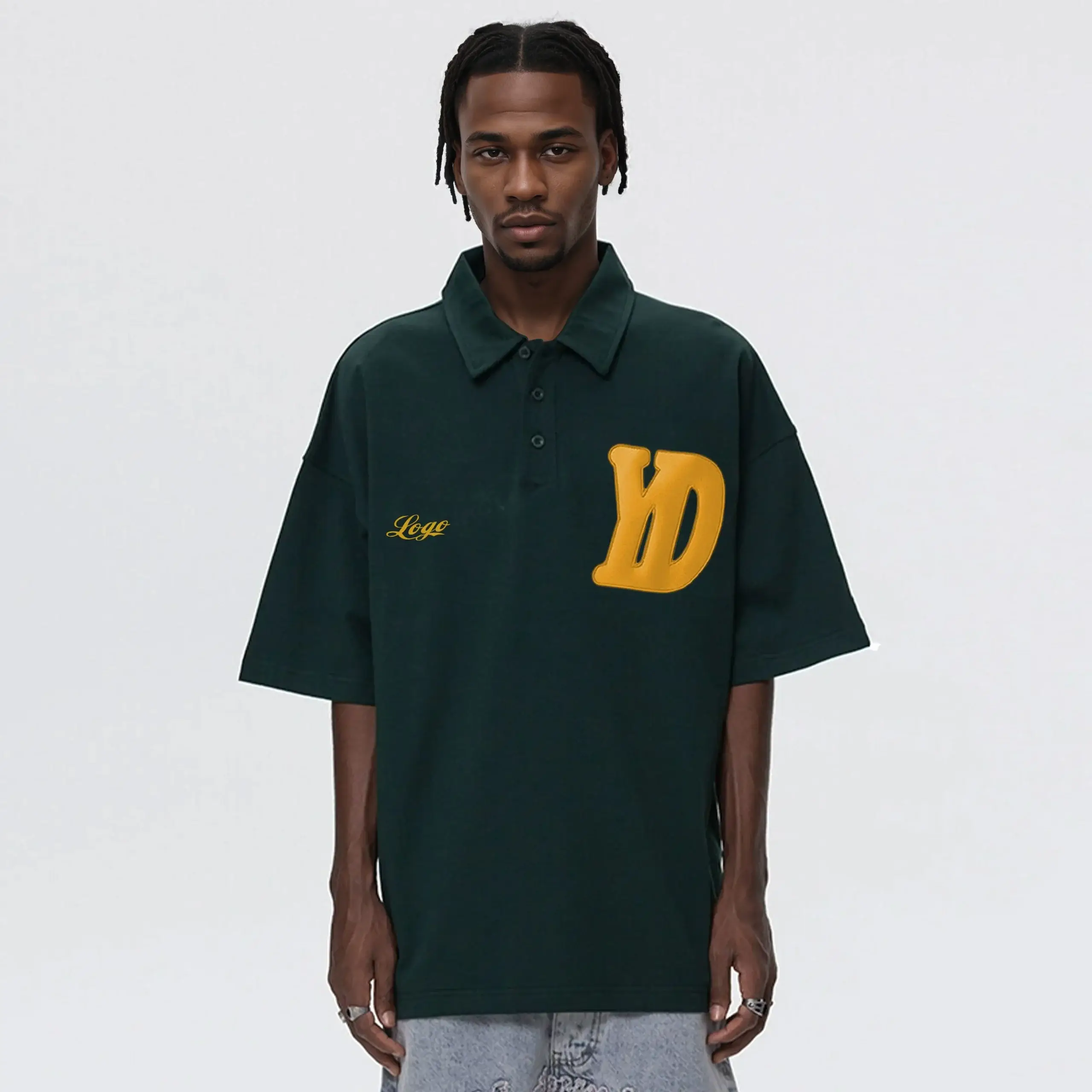 Heavyweight Custom Polo Shirt Men's Short Sleeve Cotton T-Shirt with Logo Printing, OEM Manufacturingd Shirt