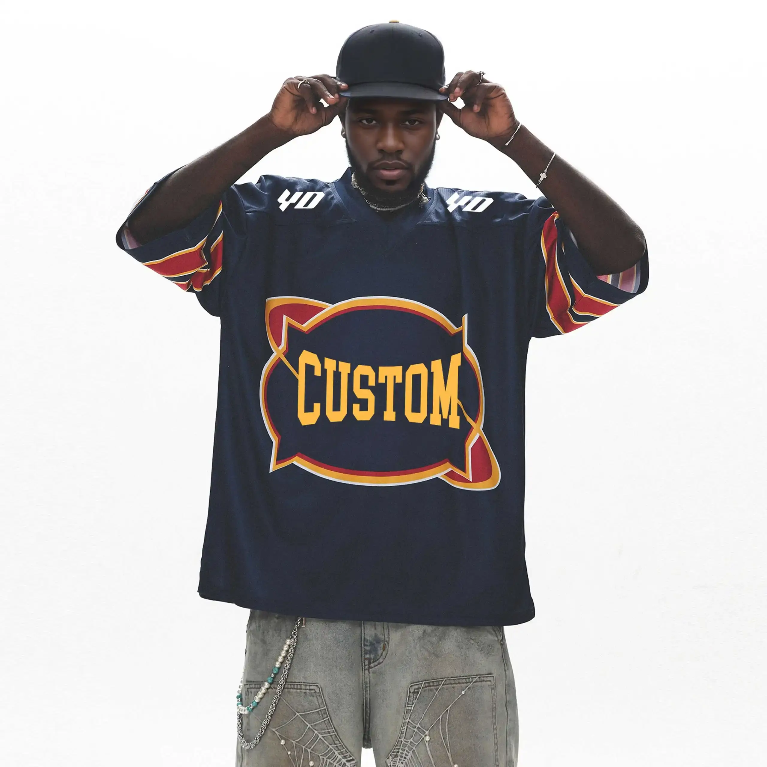 Men's Baseball Jersey T-Shirt Custom Sublimation Print - Oversized Streetwear Solid Blank Mesh Sportshirt for Football
